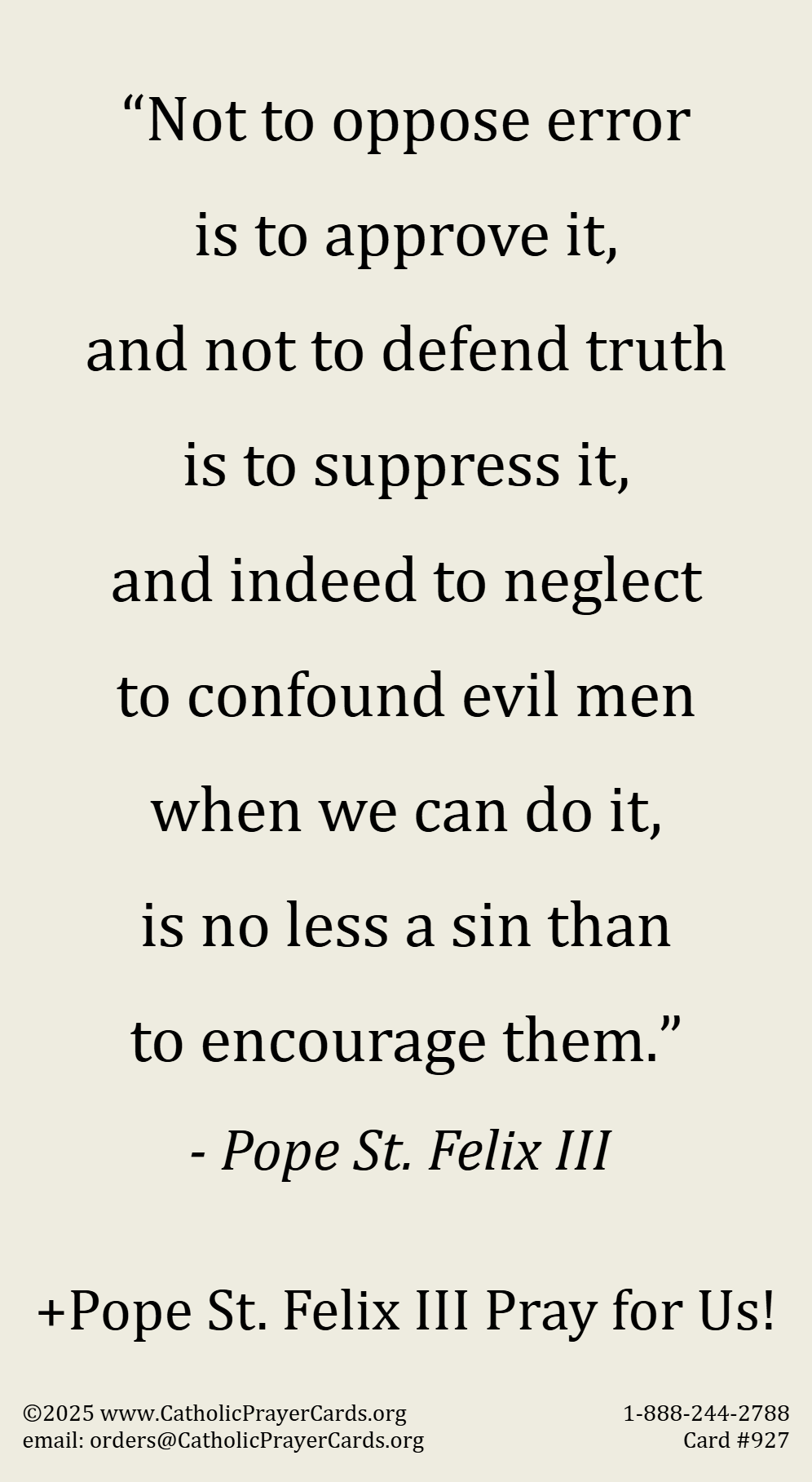 This beautiful Pope Saint Felix III Prayer Card is available in our 3.5x2 inch wallet size.